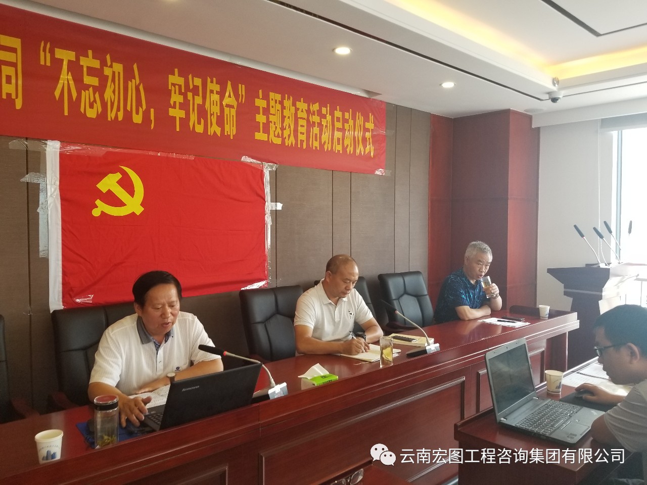 为庆祝中国共产党建党98周年,云南宏图集团公司于2019年7月1日9点整启动“不忘初心,牢记使命”主体教育活动,由党员、入党积极分子、公司中层及以上干部、昆明地区项目负责人参会。
